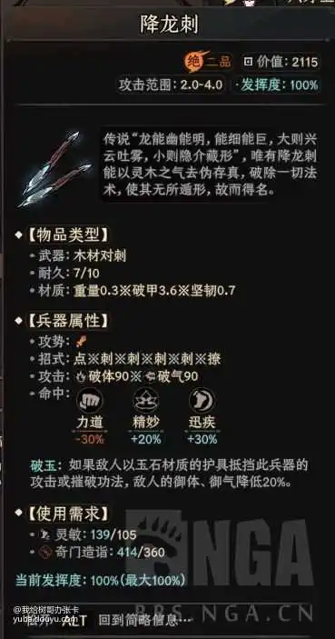 那么回到峨眉刺上面,下图是二品的木材对刺,招式中只有一个撩是吃精妙的,其他的 点和刺 全部只吃迅疾。