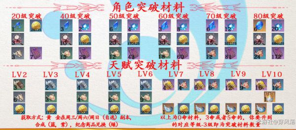 将行秋培养到80级突破、天赋10/10/10(图中为单个技能,全满乘以三)所需材料如下:
