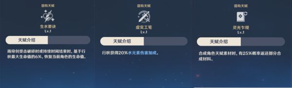 虚实工笔,行秋获得20%水元素伤害加成,简单明了的加水伤效果。
