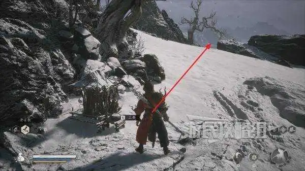 从栏杆跳下去之后,落地往右看可以看到一个亭子,开启亭子里桌子上的宝箱即可获得。
