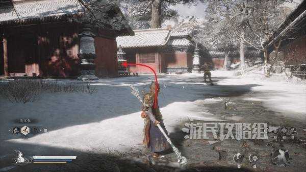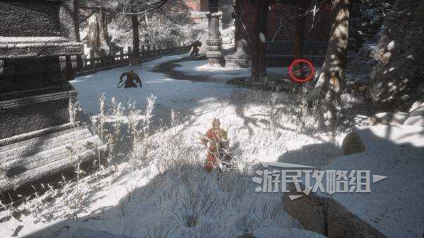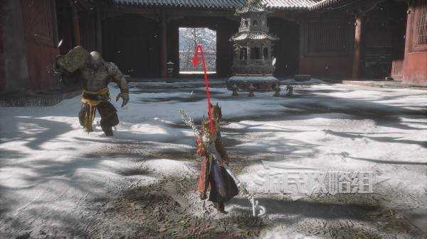 从第三回【小西天-小雷音寺-寺门】出发,面对土地庙往右侧走到头,进入走廊,从走廊沿着唯一的斜坡往上走,然后右转上楼梯。