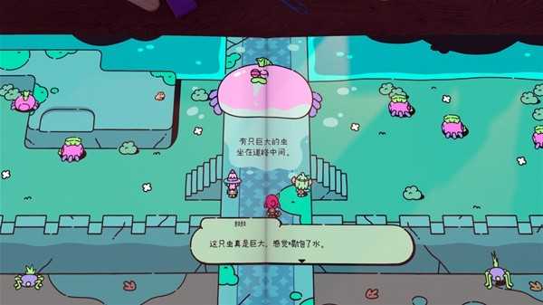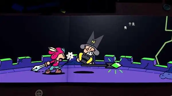 那么在有了“穿越”和“书写”,“翻页”自然而然的纳入了玩法“日程”——在关卡推进的过程中,很有可能会出现需要的字词在之前页面的情况,不过可惜的是本作的玩法整体设计都非常的浅度,仅存在单一层次的谜题关系,比如如果角色的对话会包含某次句子,你可以从中获取词语,那么如何找到那个可以说出特定对话的NPC,感觉会是很有趣的内容。