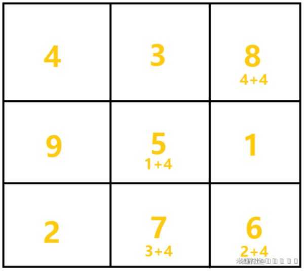 空着的地方为九,以及我们的目标是将立方调整成不重复的数字且横列、竖列、斜列之和全部相等