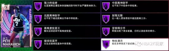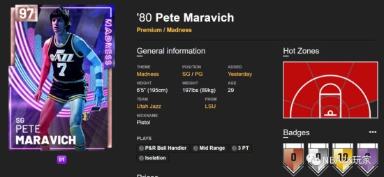 皮特马拉维奇,绰号“手枪”,曾在NCAA创下无人能打破的得分记录,那么这张能力值达到97的粉钻马拉维奇属性如何呢?下面就为大家带来“ASPIRIN”分享的《NBA2K19》粉钻马拉维奇数据测评,感兴趣的话不妨了解一下。