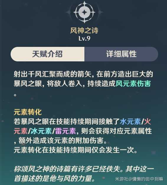 这个天赋就是关键天赋啦,有了这个天赋,温蒂能为自己跟扩散元素了队友恢复元素能量,基本可以保证技能的循环使用!!!