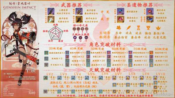 《原神》辛焱是一位四星的火系角色,也是目前火系唯一一个有护盾的角色,还不知道怎么培养的玩家请看下面“穿风落叶”分享的《原神》辛焱配装推荐及突破材料一览,希望能够帮助大家。
