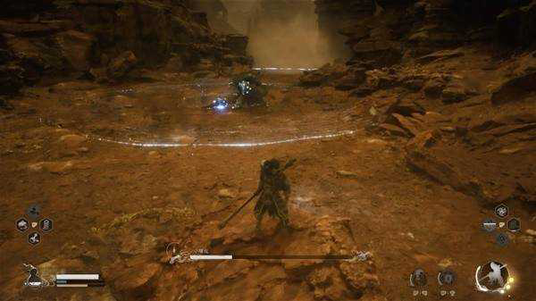 因为「小骊龙」个人觉得超级难打,特别提一下打法,「小骊龙」3/4血量和1/4血量的时候,会随着音乐敲击地板,需要躲避从地板传来的雷电,直接翻滚或跳跃来躲避非常难,建议站到石头上面,就能轻松的看他敲鼓囉。