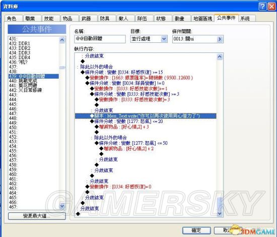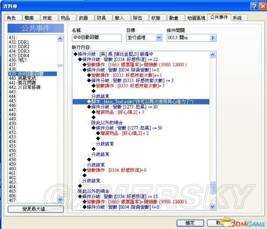 使用RPG Maker XP打开项目,点到“公共事件”页签。