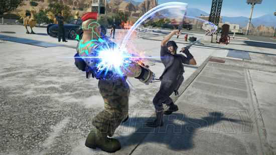 对战中他将施展原作熟悉的瞬间移动、魔法与幻影剑等招式应战。此外还会收录《Final Fantasy XV》经典场景「锤头鲨(Hammerhead)」的格斗舞台,以及诺克提斯的特有服装(休闲风格 / 路西斯王的礼服 / 莫古陆行风格 / 格斗王的服装 / 天选之王的服装)。