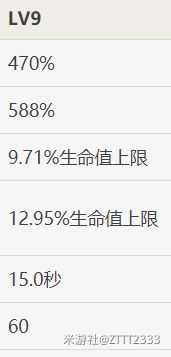 上图是胡桃在普攻等级为九级时的数据,不难发现重击倍率还是比较不错的,这也是为什么大家都说胡桃的输出手法主要为重击循环,也就是从魈哪里偷学的火轮两立(bushi)。而且因为重击在处于e技能持续时间时会给敌人附加血梅香效果,也是重击输出的一个原因