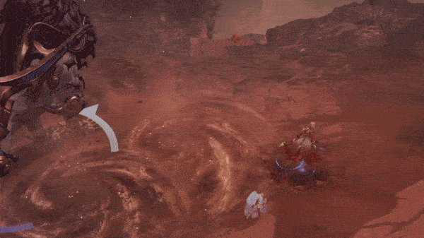 “克罗马尼姆”的常规技能动作都有较长前摇以及范围提示,冒险家灵活躲避即可,但它的核心伤害动作却有一定迷惑性,需要注意辨别: