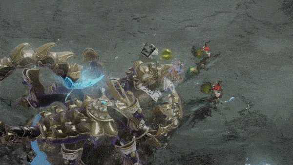 一二阶段中冒险家们需要及时走位或使用位移技能,躲避它的爪击、拍地、火焰波浪、沉默圈等技能。而在第三阶段中,则会面对它的核心机制:当“代达罗斯”吼叫后会召唤两个跟随目标的沙尘旋风并造成伤害,如果连续3次被击中,冒险家将会进入“石化”状态,此时冒险家可免疫所有来自“代达罗斯”的攻击,“石化”状态结束后冒险家将会获得30秒的“石化免疫”状态。