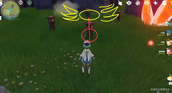 来,你们把这四个灯理解为四个丘丘人,他们站位太分散,而你砂糖的手里正好捏着个大招,想把他们聚起来一波带走,求这个大招该怎么放?