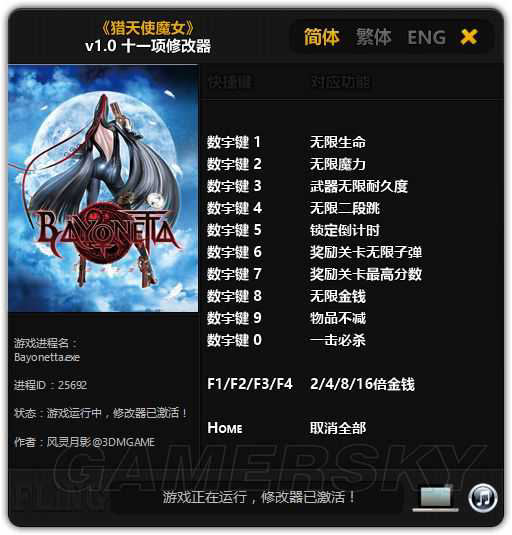 简体、繁体、English,可以切换语言(切换语言后修改器将把该语言设置为默认语言)。