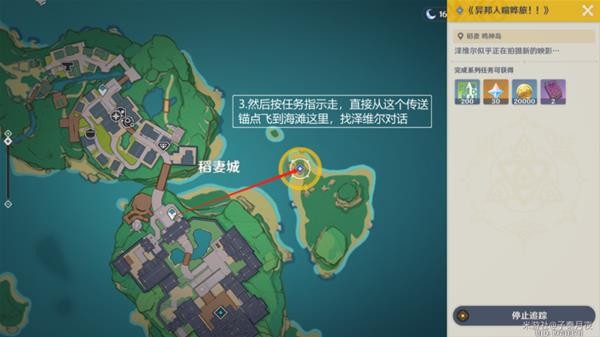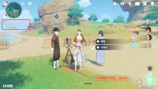 3.然后按任务指示走,直接从这个传送锚点,飞到海滩这里,与泽维尔对话;