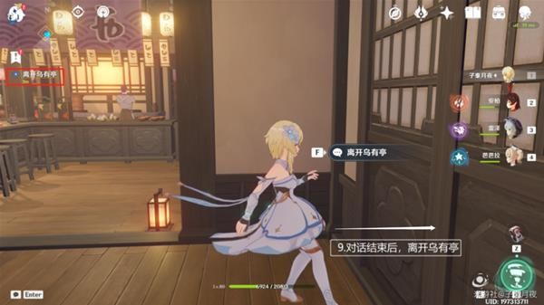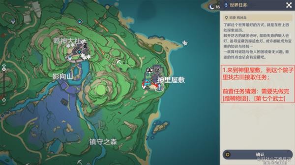2.传送到神里屋敷后,从大门进来院子里,找吉田对话接取任务;