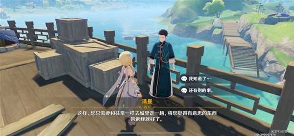 对话得知,他写诗暂无灵感,需要我们去璃月港转转,收集一些有趣的东西并告知