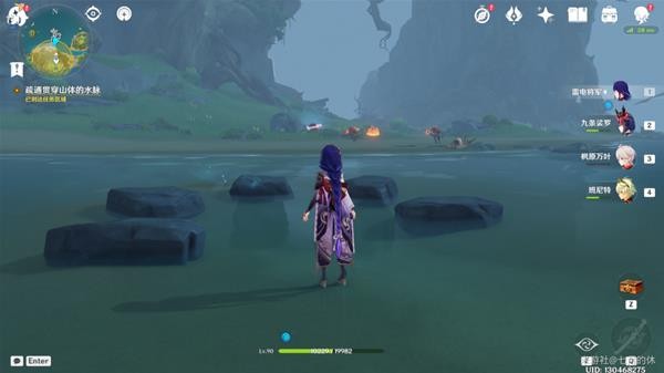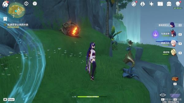 2.然后跟着水脉,沿着楼梯上山,打碎石头即可。(路上很多宝箱,老规矩,不纳入!)