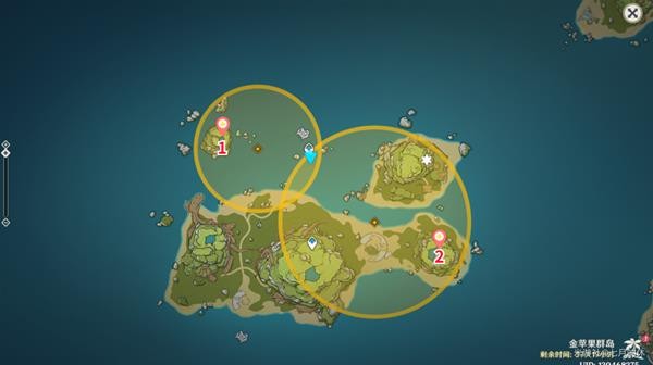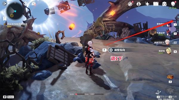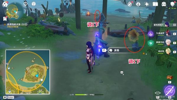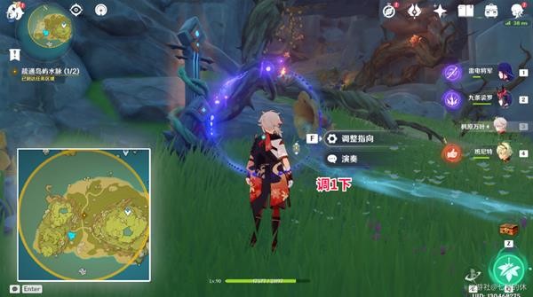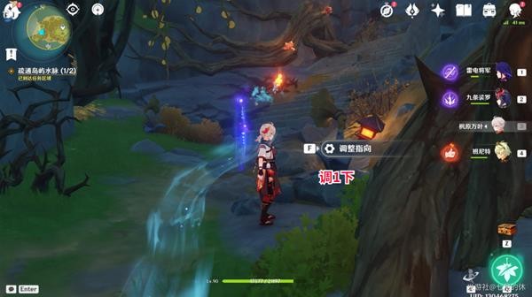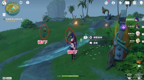 1.第一处水脉疏通,清掉怪,红圈两个喇叭机关调1下方向(调整后如图所示!),然后演奏这把琴即可。