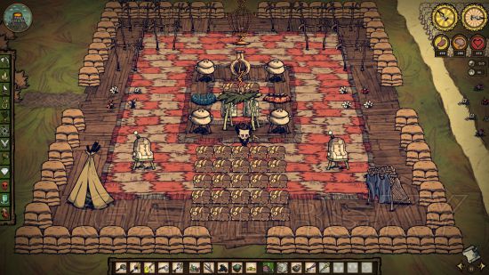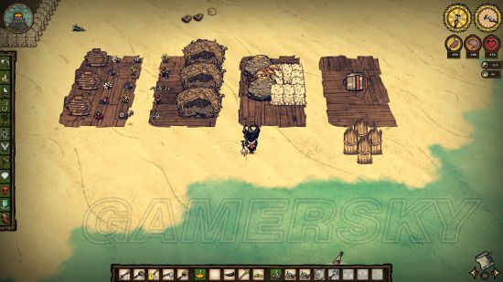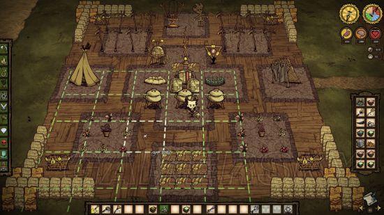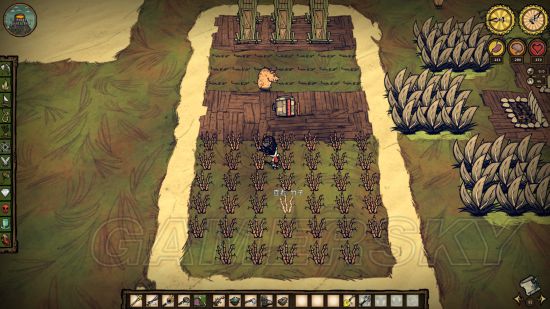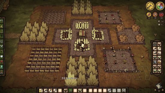 也可以把蜜蜂区单独移出去,毕竟蜜蜂有点烦(后面可参考海难),移出去后可以扩展农场,草树枝以X为中心,7×7。