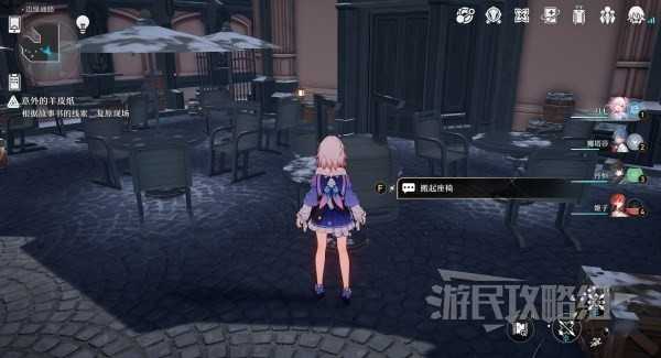 寻找露天咖啡厅中不同寻常的桌椅,然后选择平放在地面上,即可获得丰厚的战利品宝箱。