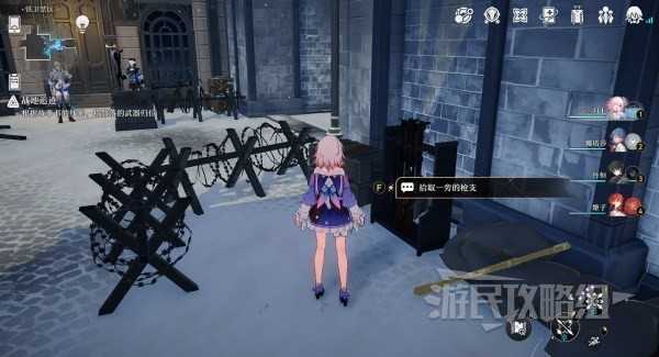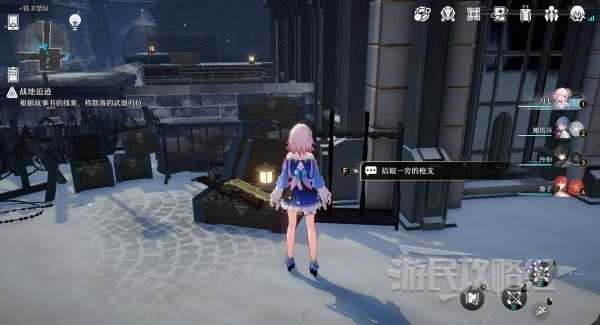 调查旁边有2支枪的枪架,把枪放在枪架上,共有3处位置,参考下图。
