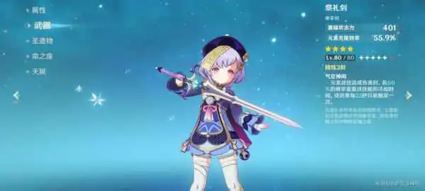 高精炼祭礼剑可以高频刷新七七的战技,从而使奶量无间断。