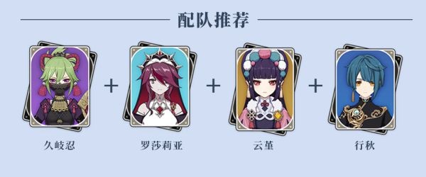 (1)普攻流的玩法,偏娱乐,罗莎莉亚和云堇可以给阿忍高额的加成