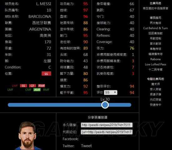 梅西30级数据