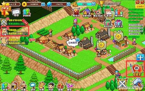 所有“攻城任务”都需要进入“打天下”系统。需要完成的攻打任务,会自动进入“世界地图”,弹出需要攻打的城市的界面。在打天下系统中,会获得“武将”“农民”的招募权,“兵种”“装备”的研究权。是非常重要的验证军队实力和增长军队实力的途径。