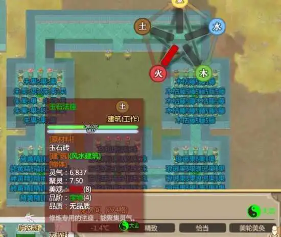 《了不起的修仙模拟器》单一属性的练功房布局很容易,不过五行聚灵阵在风水方面还是有很多值得注意的地方,今天小编带来“Muyei”分享的《了不起的修仙模拟器》大吉五行聚灵阵布局图,供大家参考。