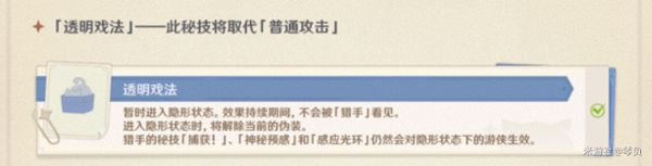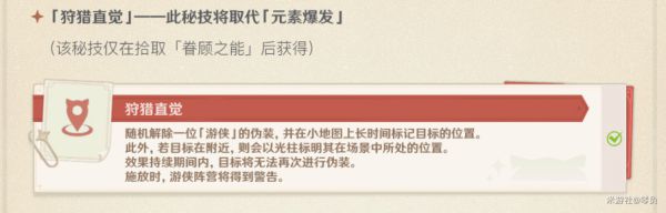 因为它对游侠进行躲避,隐藏,逃避抓捕和寻找元素爆发技能有更加灵活有效,【诱饵战术】更适合有计划的阻击和引诱猎手。