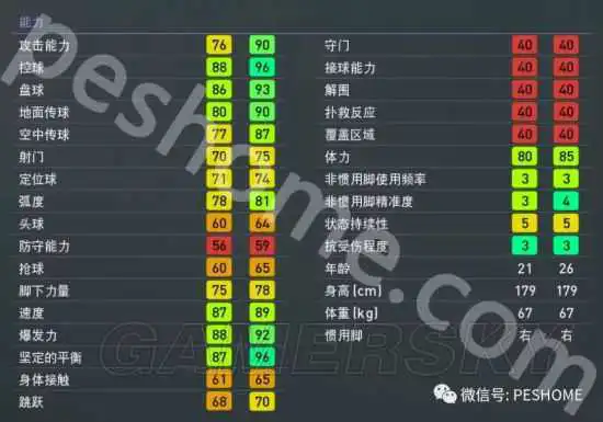 这3名妖人除了位置特点惯用足完全一致以外,从细节上也也有诸多相似之处,例如他们都是有球型打法的天才,具备非常强大的个人带球突破能力,在并不以身体见长的同时却能在持球推进的过程中产生极大的动态冲击力;他们也都有一个硬脚头,常常能在有助跑后或通过跑位迎球抽射,打出球速极快、射程超远的世界波;他们还能边能中,擅长场上多个位置,在防守能力值并不高的情况下,在实战中经常做出大范围的跑动和极深的回撤,为防守端添砖加瓦。