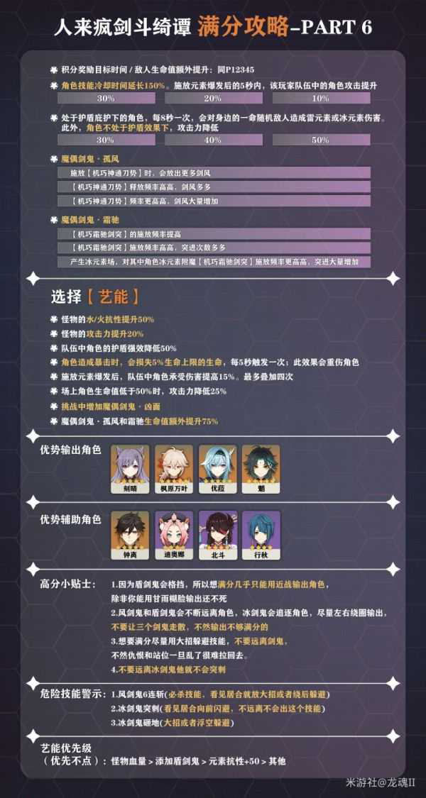《原神》1.6版本风来人剑斗绮谭第六日活动已经开启,不少玩家想要了解本关卡的打法和阵容搭配,下面请看“龙魂II”带来的《原神》风来人剑斗绮谭第六日一图流攻略,希望能够帮助大家。