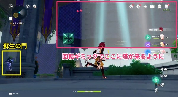 1.在帮助莱昂的区域前方,利用复苏之门附近的机关旋转上升气流旁的塔(参考图片)。