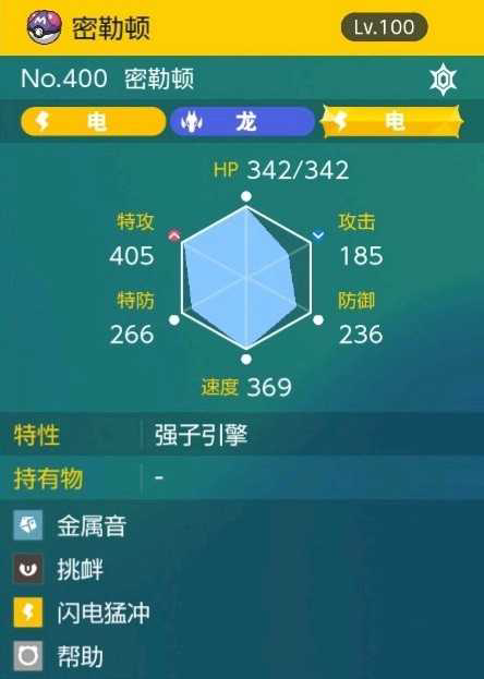 3)月亮伊布:大胆性格,努力值252hp 148防御 108特防,携带道具对焦镜,核心技能“刺耳声”、“帮助”