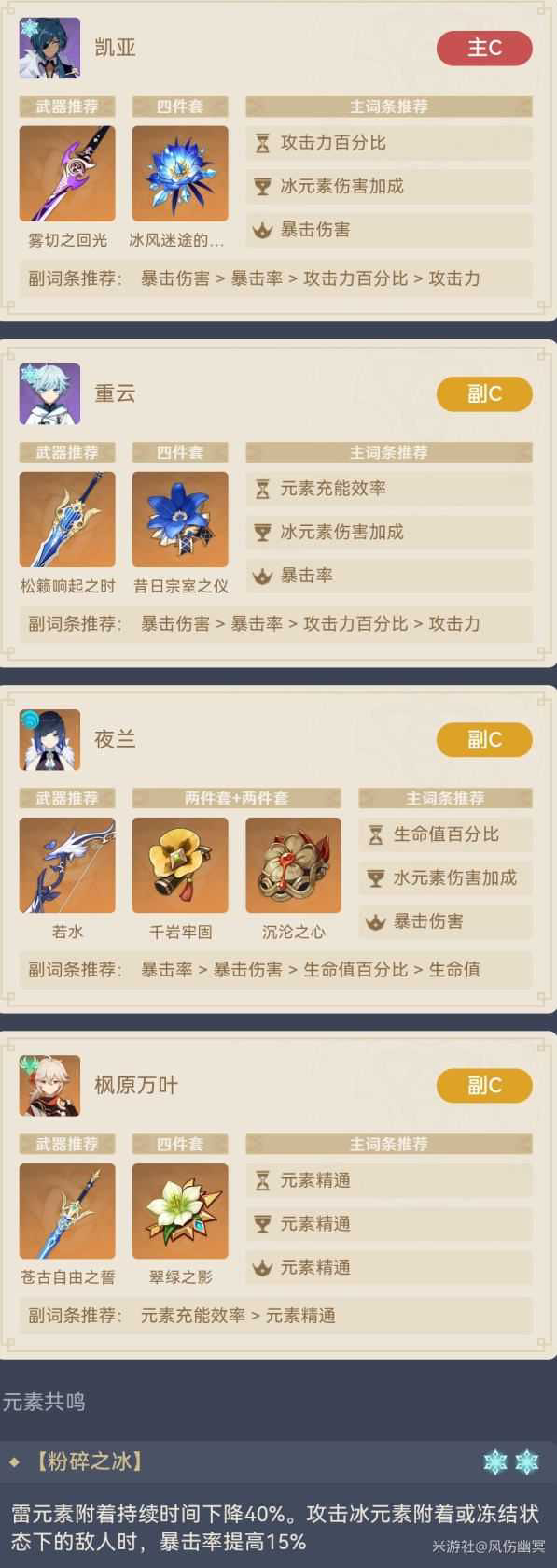 《原神》中的夜兰是一名水属性副C,后台可以挂水,与凯亚配队可以组永冻流。下面请看由“风伤幽冥”带来的《原神》凯亚+夜兰永冻流配队推荐,一起来看看吧。