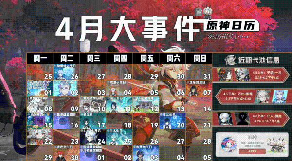 4月份即将到来,那么《原神》在4月份中都有哪些活动呢?下面是由“冰是真的菜QAQ”为大家带来的《原神》2024年4月活动一览,希望可以帮助到大家。