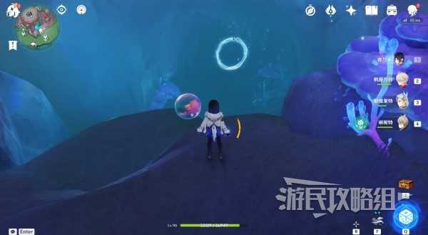 一直往前游到尽头,可以看到水面上方有一颗神瞳,从这里往上游。