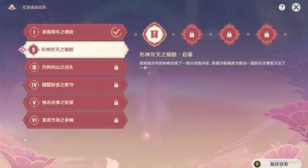 「忆昔诸途巡历」活动前六天,每天会解锁相应的任务和两项试炼,新解锁的内容需要完成前一天的任务与试炼后才能接取。
