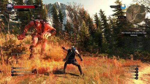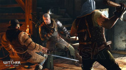 我们试玩的最初部分是一些教学关卡,即杰洛特对当时还是熊孩子的Ciri进行猎魔人的训练,Ciri是个刚刚度过悲惨童年的猎魔人学徒(LZ注:小说中Ciri曾今贵为辛特拉公主,在她出生前就被杰洛特作为任务的酬劳“指腹为徒”点将为新一代猎魔人,后来父母双亡,在其祖母美丽的辛特拉王后卡兰瑟也去世后,杰洛特将Ciri带到了凯尔莫汉。大陆版猎魔人第一部小说中有她妈妈和祖母的故事,虽然那时Ciri还是个受精卵。)在对诸如战斗、法印和道具等游戏要素并不枯燥的介绍后,还描述和发展了一些各角色间的关系。在教学关卡的最后你已经知道了(LZ注:即IGN那个15分钟开头演示),你会在亦师亦友的老猎魔人维瑟米尔陪伴下开始对叶奈法的寻找之旅。