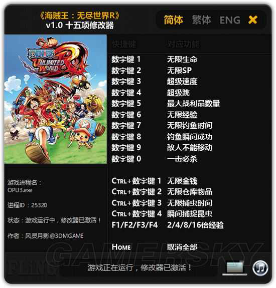简体、繁体、English,可以切换语言(切换语言后修改器将把该语言设置为默认语言)。