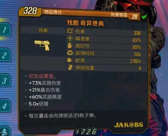 很是给力,这把枪28一直用到36级照样打的动怪。如果有摸到j厂爆伤mod,圣物请务必留好。
