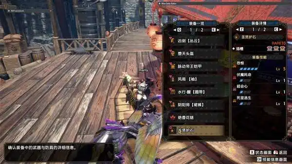 触发加伤:攻击守势,三虫伏魔,强化纳刀,龙气活性,寒气炼成,鬼人三件,短催猫饭 ,怨恨五,绝路三,岚龙武器虫技增幅