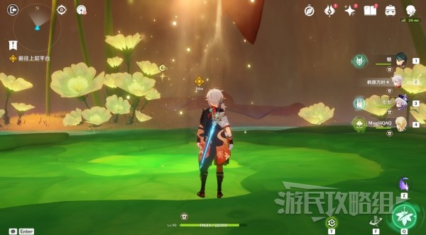 ④继续跟随任务目标前进,利用蘑菇到达目标位置,清理丘丘人获得第2个树脂