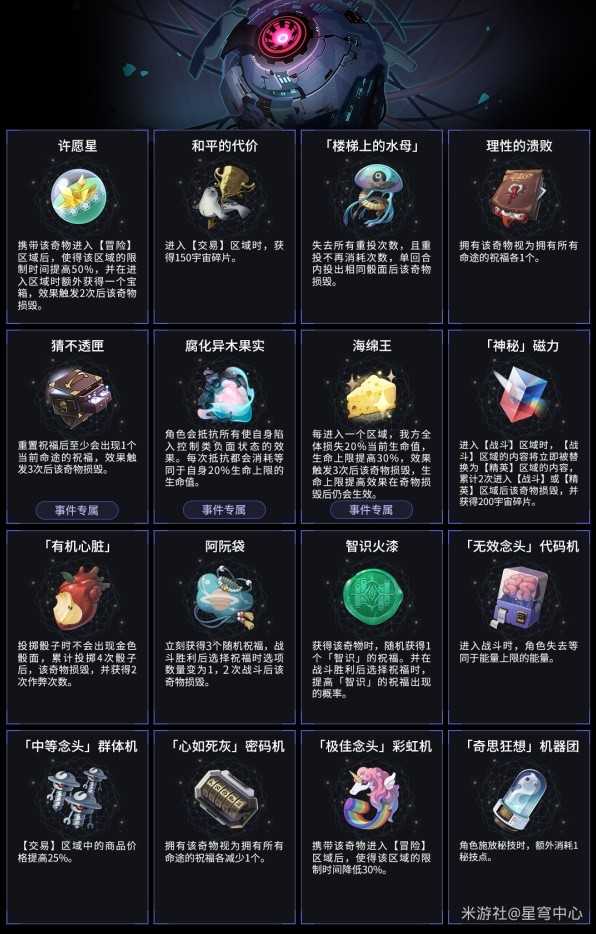 正文 《崩坏星穹铁道》1.6新增奇物事件一览 游戏小天使 /2025-02-20 22:02:11 /38 浏览量 0220 《崩坏星穹铁道》中模拟宇宙在1.6加入了大量的新内容,其中新增的奇物和事件都有怎样的效果呢,下面请看“星穹中心”带来的《崩坏星穹铁道》1.6新增奇物事件一览,希望能够帮助大家。 崇云临岸骇,鸣条随风吟。 -- 展开阅读全文 --