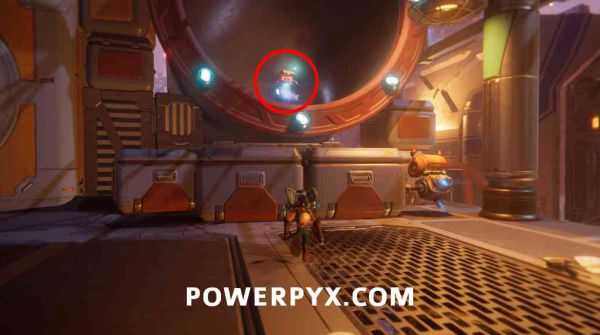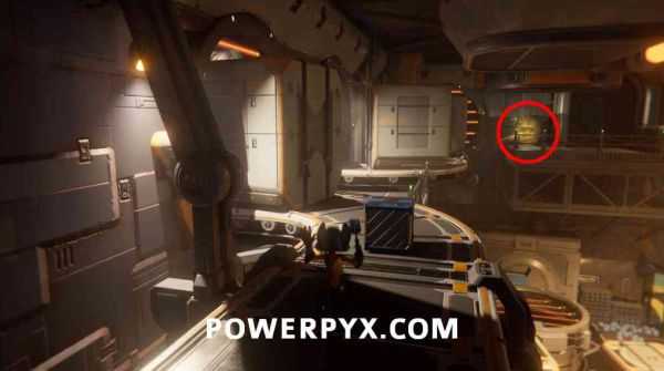 最简单的方法是站在移动的箱子后面,面向它移动的方向,找到时机跳上平台。随后再向前方走,可以看到两堵墙上有一些蓝色的六边形标记,在这两堵墙之前跳跃,到达右侧顶部。