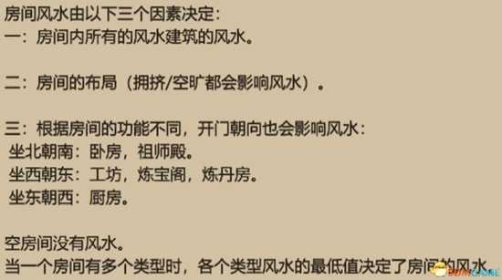 而房间每一格的五行属性受到2项影响:1土地2放置物