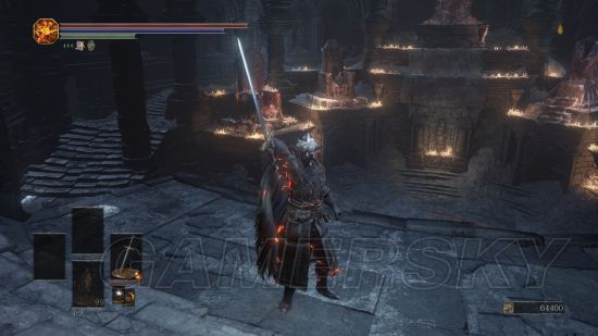 铠甲:黑手铠甲(大书库位置,BOSS门前胖骑士之后有三个穿黑手套的NPC,杀之,之后在老婆婆购买)