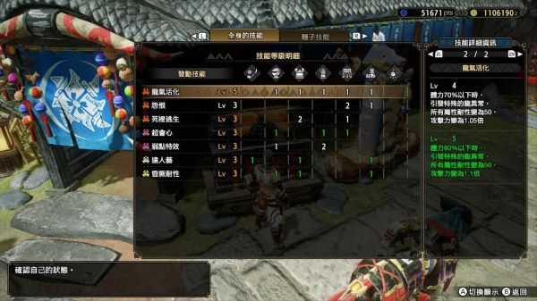 龙气活化于体力低于80%触发特殊龙状态间接引发死里逃生:有1.1倍攻击50属性耐性和+20攻击。